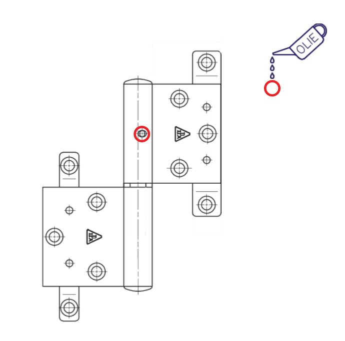 Hængsler smøres med syrefri olie under gentagen aktivering. Der kan med fordel anvendes en syrefri fedt. Her vil det være nødvendigt at løfte døren/vinduet af tapstykkerne og påføre fedt direkte på tapperne. Smøring er specielt påkrævet ved hængsler med messingtap. Der smøres efter behov, dog min. 1 gang årligt.